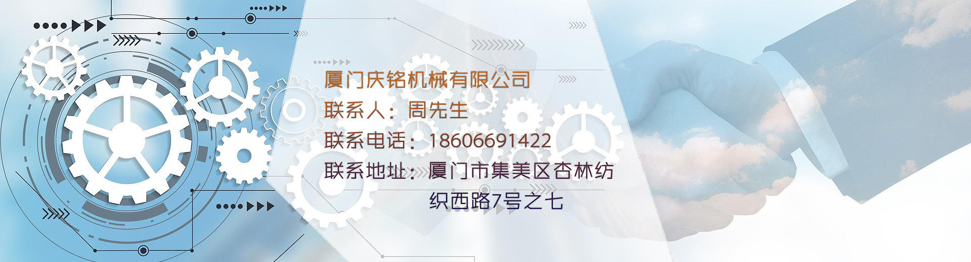 制作大圓機(jī)心臟和傳動(dòng)零配件。供應(yīng)臺(tái)灣和大陸機(jī)械廠,至今三十多年歷史。經(jīng)過(guò)不斷的辛勤努力,2000年在大陸福建省成立了廈門慶祥銘機(jī)械有限公司,2015年公司改組為廈門慶銘機(jī)械有限公司。